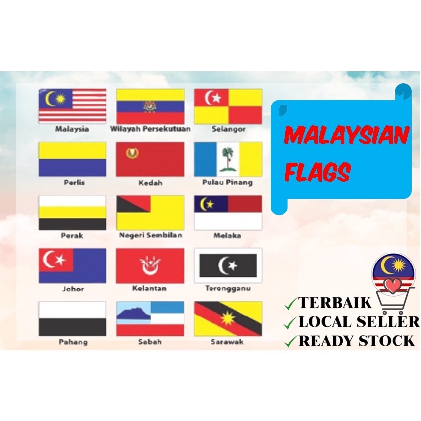 Malaysia Flag Perlis Kedah Selangor Pahang Kelantan Terengganu Johor Perak Negeri Melaka Sarawak Pulau Sabah Bendera Map Shopee Malaysia